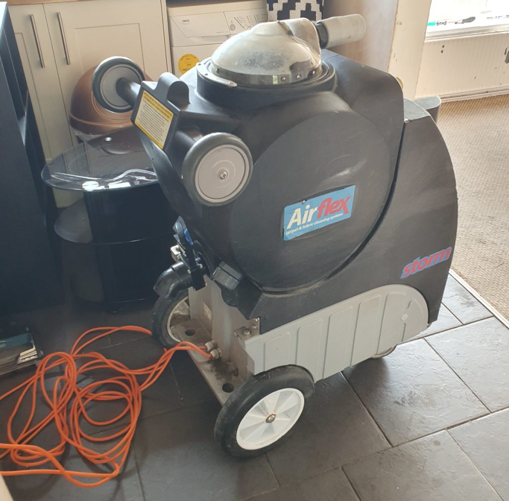 To achieve the best results, we rely on the powerful Airflex Storm carpet cleaner, a machine renowned for its efficiency and effectiveness. The Airflex Storm is designed to handle even the most challenging carpet cleaning tasks efficiently, ensuring a thorough and deep clean.
